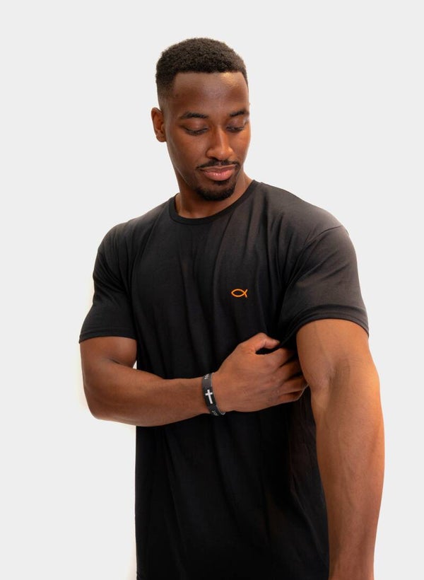 Slim fit T-shirt made from stretchy cotton fabric. Round neck and short sleeves.